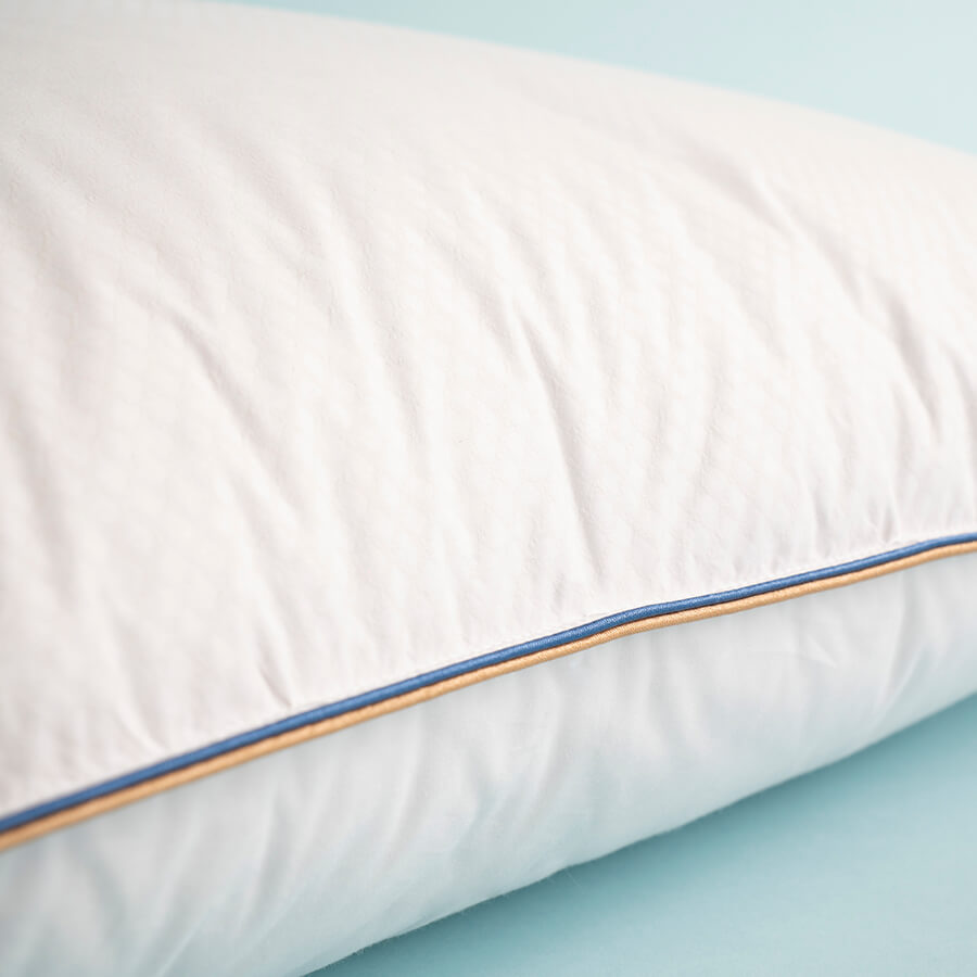 Clima Sleep Downa kaz tüyü yastık, higroskopik etkili Class 1 kalitesine ait kaz tüyleri ile nefes alabilir ve sağlıklı bir uyku deneyimi yaşatır. Diğer yüzünde kullanılan %100 pamuk kumaşı, sarı ve lacivert kenar biyeleri ile şıklığını tamamlar. İklim dengeleyici dış kumaşı Down Proof pamuklu No Mite sertifikasına sahip olup, toz akarı ve ev tozu alerjisi olanlar için uygundur. Bakteri barındırmayan yapısı ile güvenle kullanabilirsiniz.
