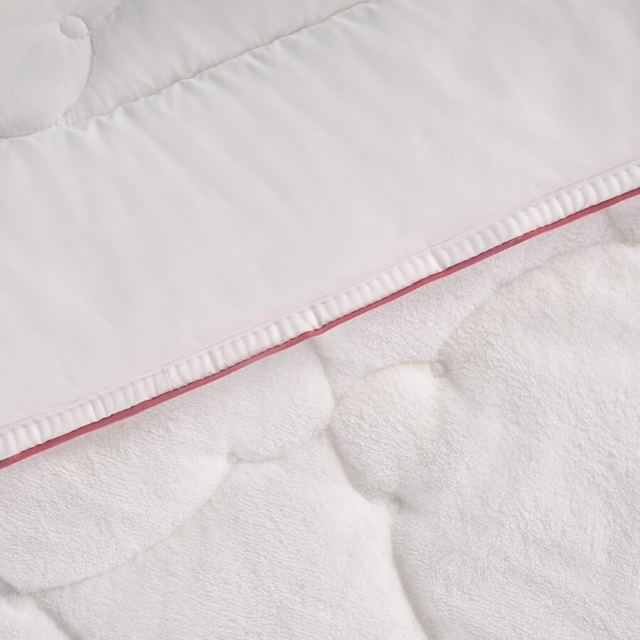 Weighing 413g, the Nuova baby duvet from Othello Bimba is filled with HCS fiber. Designed for year-round use, one side of the Nuova baby duvet is made of plush fabric while the other side utilizes micro fabric technology.